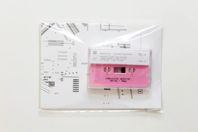 MMNO and Polido created “Decadent Resistance” after an invitation from Fungo. The album was composed, produced and mastered by both between Lisbon and Berlin and it travels through dark and dense landscapes. Artwork by Carla Filipe, she created 100 unique covers from a typewriter and its digits.